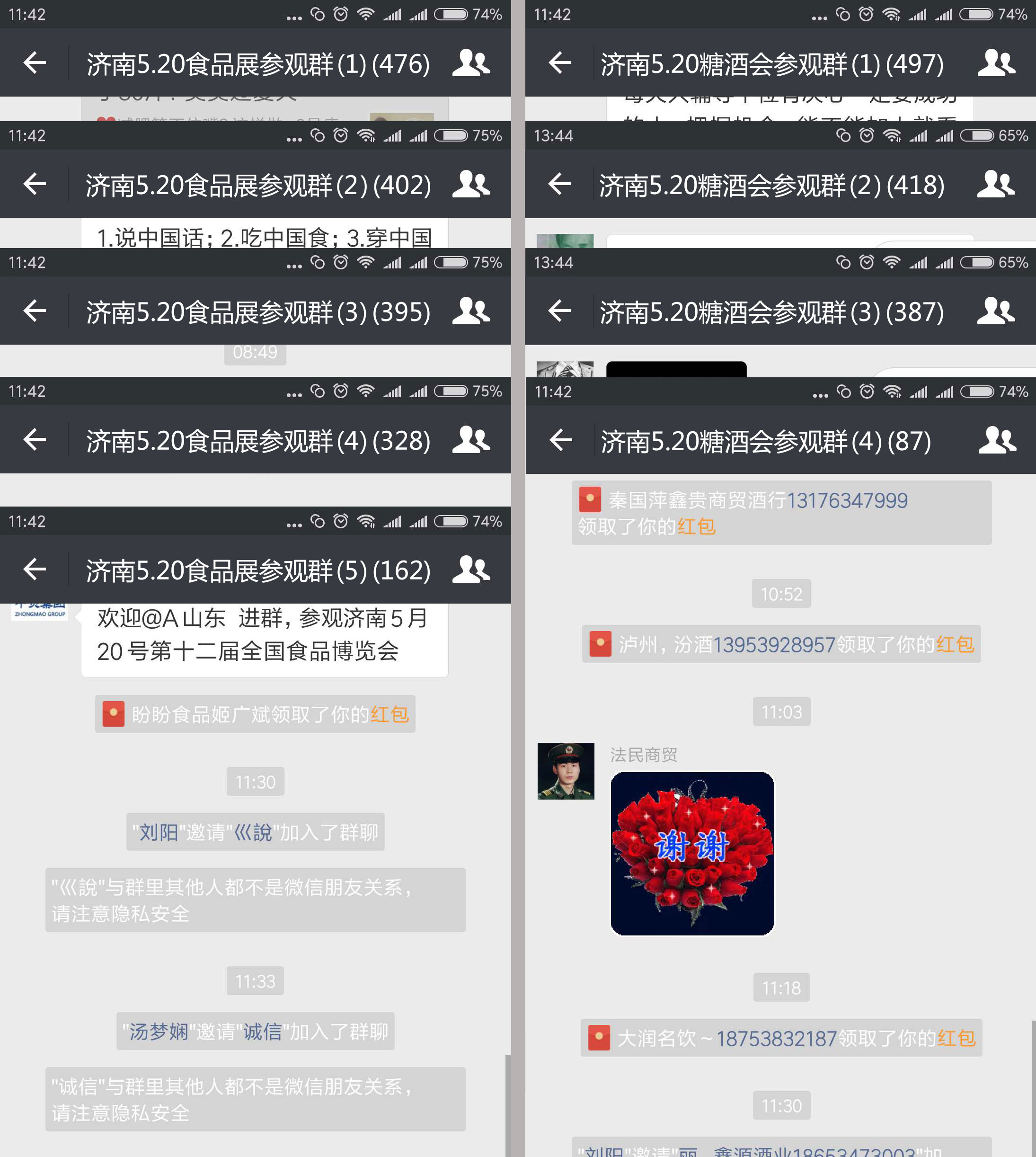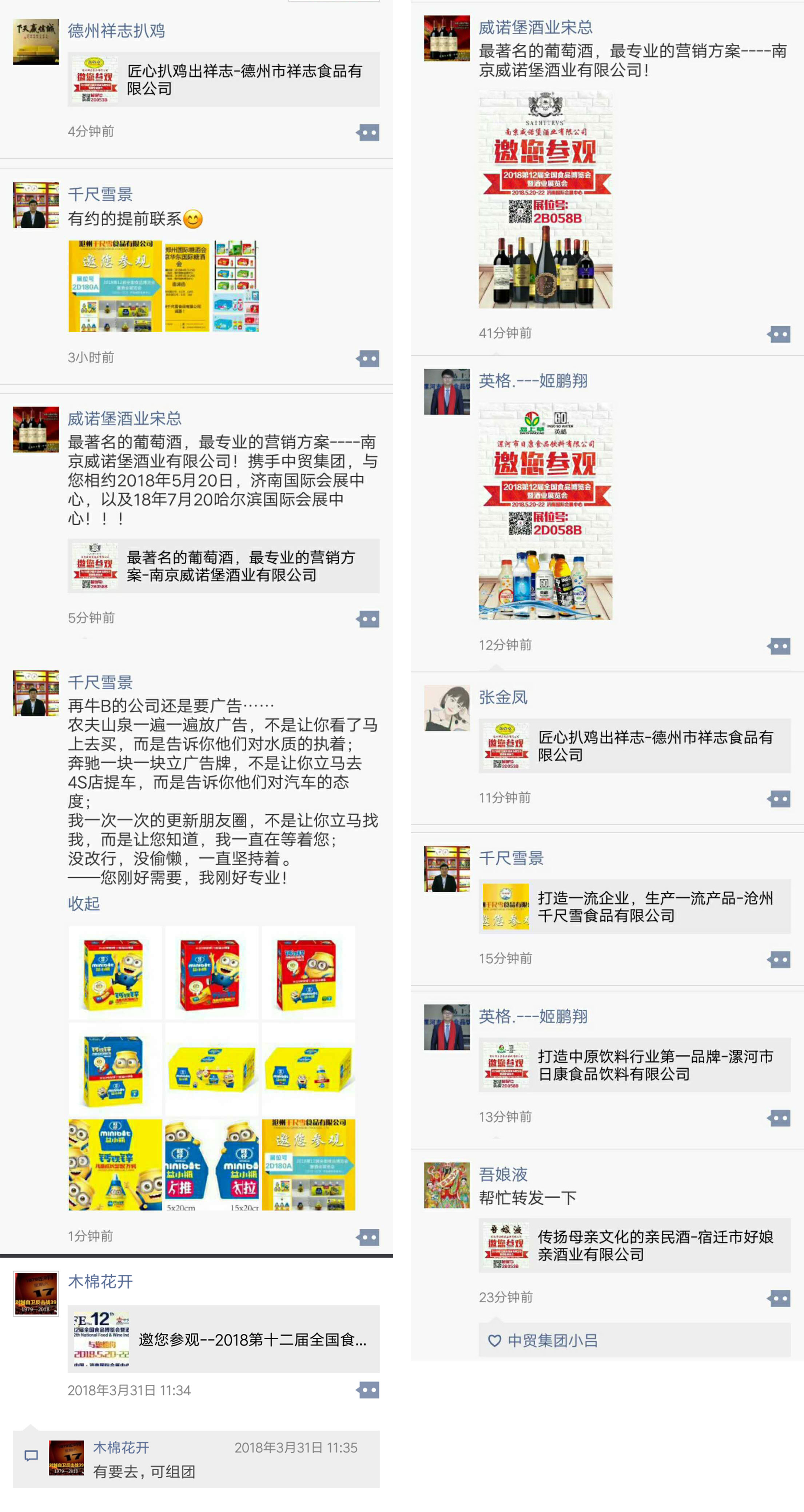 微信群成員覆蓋全國重點城市各大副食品城,經(jīng)銷商,代理商等相關(guān)行業(yè),目前已建立多個專業(yè)觀眾微信群,每個群成員接近500人。目前,微信群還在如火如荼的建立當(dāng)中,相信最后的結(jié)果一定驚為天人。