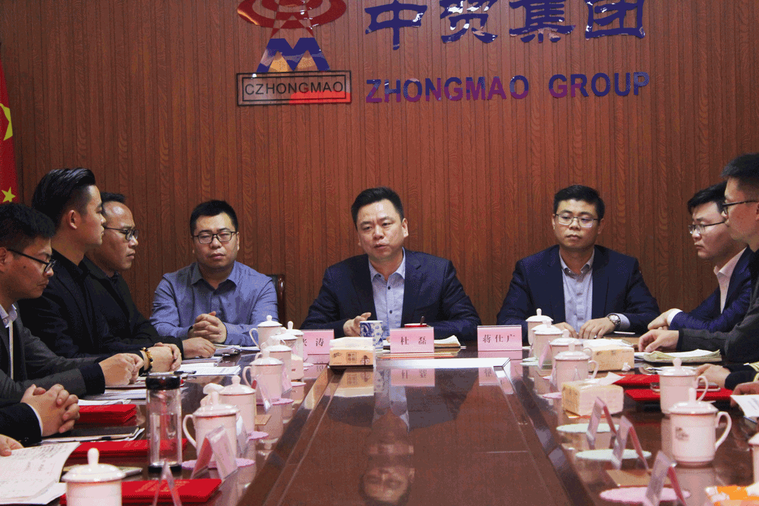 (左一山東公司總經(jīng)理張濤、左二中貿(mào)集團(tuán)董事長(zhǎng)杜磊、左三中貿(mào)集團(tuán)總裁蔣仕廣)