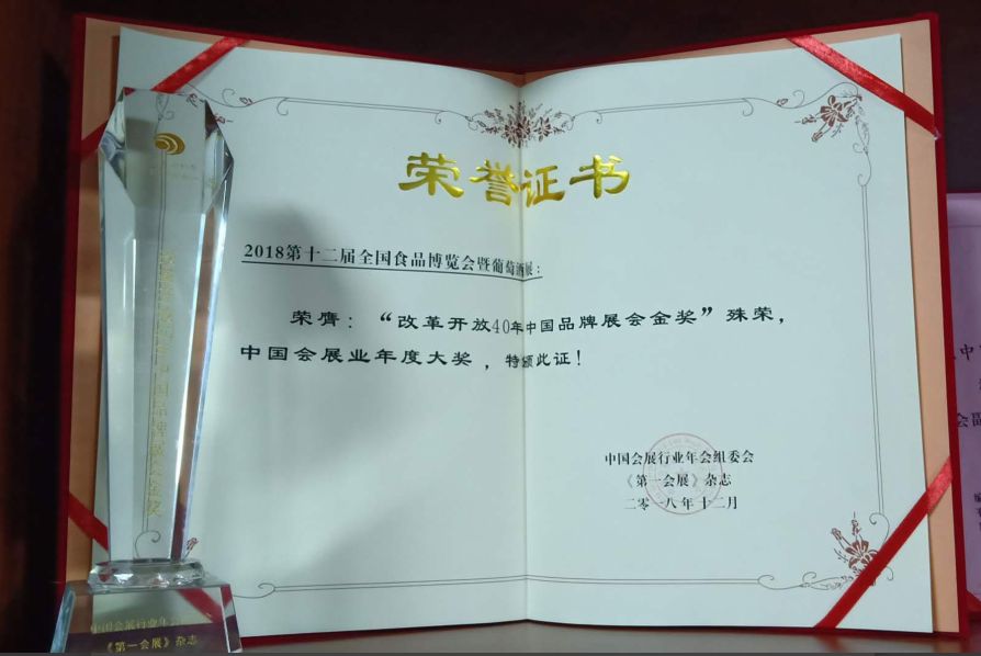 全國(guó)食品博覽會(huì)已經(jīng)成功舉辦了12屆,其專(zhuān)業(yè)化、市場(chǎng)化、國(guó)際化、綜合化不斷提升,是中國(guó)食品領(lǐng)域最具知名度和權(quán)威性的展覽會(huì)之一。在2018年度中國(guó)會(huì)展產(chǎn)業(yè)頒獎(jiǎng)盛典上,由中貿(mào)集團(tuán)主辦的“全國(guó)食品博覽會(huì)”榮膺“改革開(kāi)放40年中國(guó)品牌展會(huì)金獎(jiǎng)”殊榮。在山東省商務(wù)廳組織開(kāi)展的第二批山東省品牌展會(huì)評(píng)選中,全國(guó)食品博覽會(huì)獲得“山東省品牌展會(huì)”稱(chēng)號(hào)。這榮譽(yù)不僅是對(duì)展會(huì)走向品牌化的權(quán)威肯定,亦是對(duì)近年來(lái)全國(guó)食品博覽會(huì)在會(huì)展產(chǎn)業(yè)發(fā)展道路中所做出的突出貢獻(xiàn)和成績(jī)的肯定。