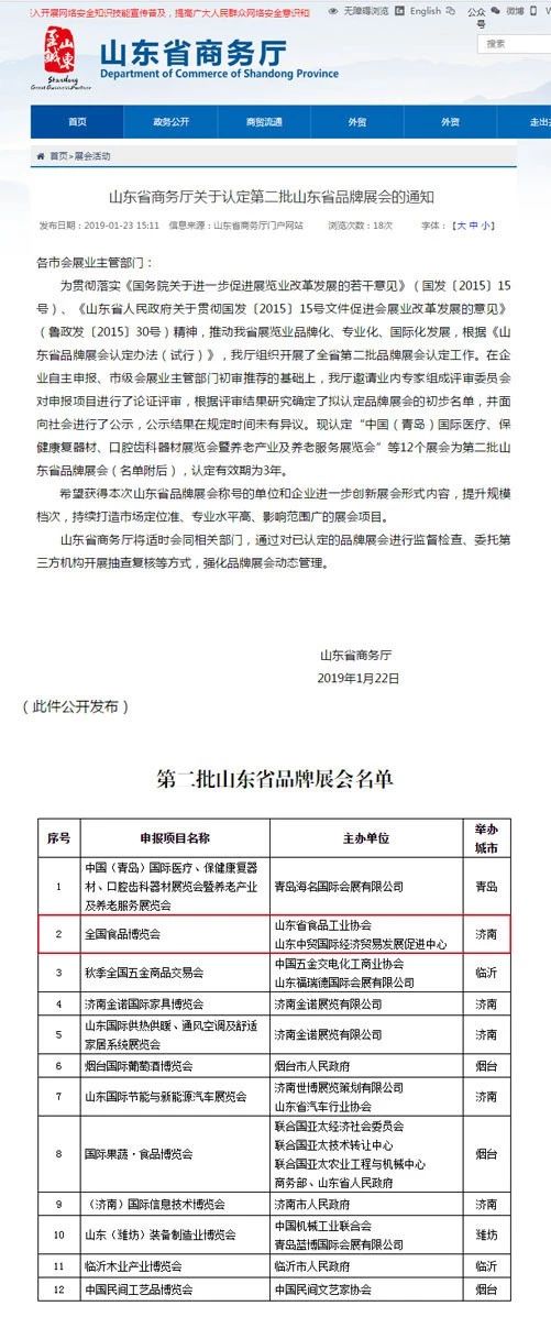 全國食品博覽會榮獲山東省品牌展會的殊榮,不僅是省商務(wù)廳對展會走向品牌化權(quán)威肯定,也是對近年來全國食品博覽會在會展產(chǎn)業(yè)